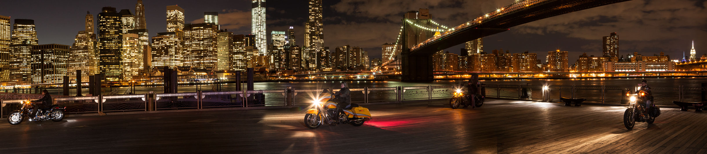 A team of bikers joined us on the Fulton Ferry Pier here in Brooklyn to capture this killer view of the Manhattan skyline and Brooklyn Bridge. As part of the environmental graphics we've produced for the dealership, this image will stretch to a massive 38', forming the backdrop for the lower level showroom.