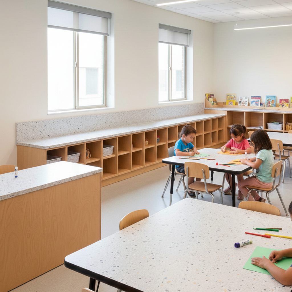 For architects designing schools, public buildings, or community spaces, surfaces must do more than look good — they have to perform. They need to resist wear and moisture, stay hygienic with minimal maintenance, and adapt to different program needs, from restrooms to cafeterias to reception areas.