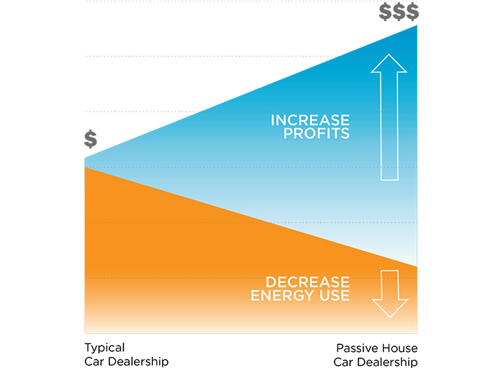 Passive House design is one approach that is rapidly gaining support for its focus on high performance buildings which can cut energy use by over 70 percent. ROI can exceed twenty percent annually, which translates to huge operational cost savings for businesses relying on notoriously thin sales margins. Red Deer Subaru in Alberta, Canada was able to cut their heating and cooling costs by 95% after renovating to Passive House standards.