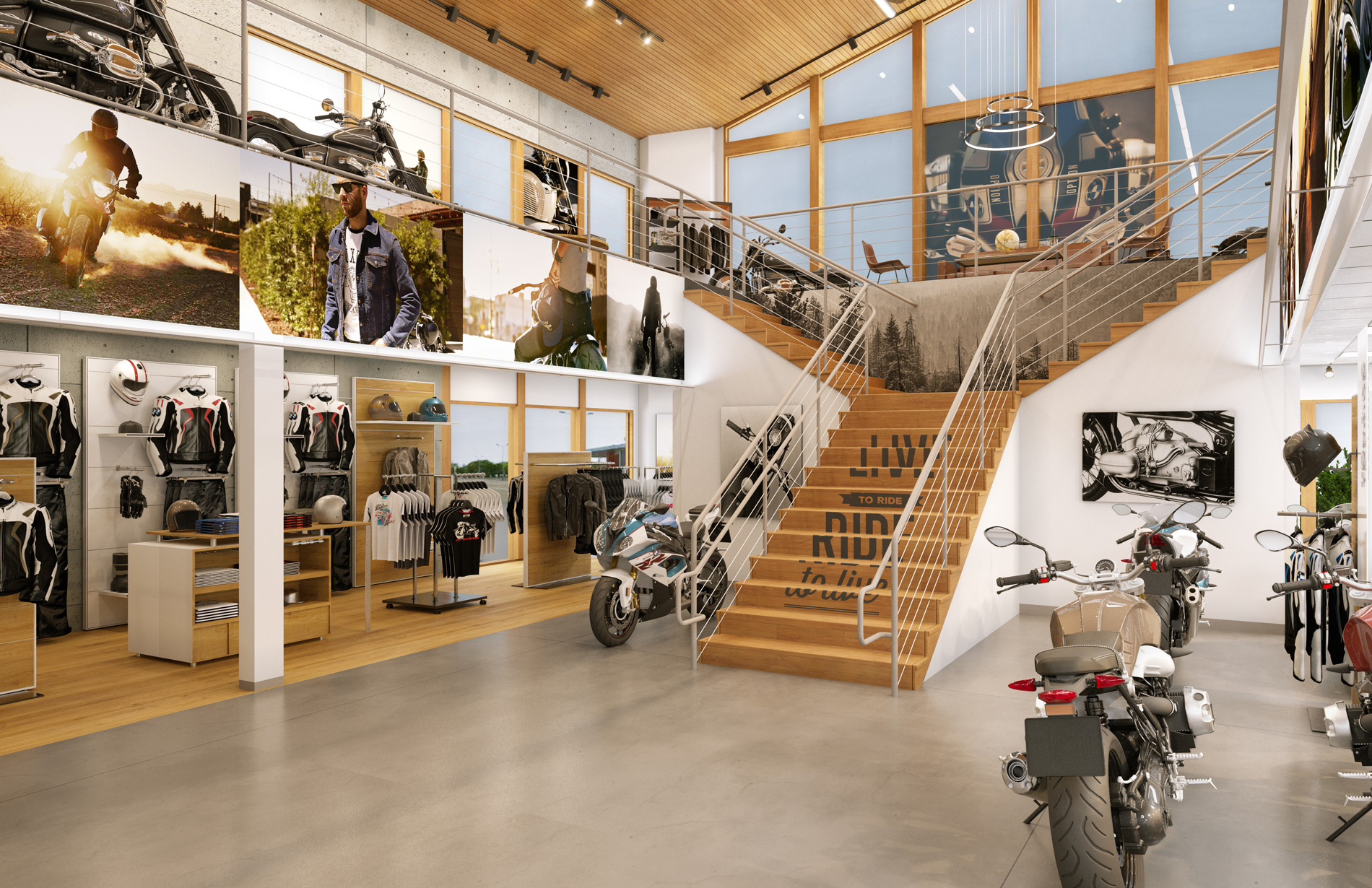 If the dealership includes a service center, it should seamlessly connect to the showroom, creating an inviting, branded area that showcases parts and accessories attractively, offering customers opportunities for upgrades and personalization.