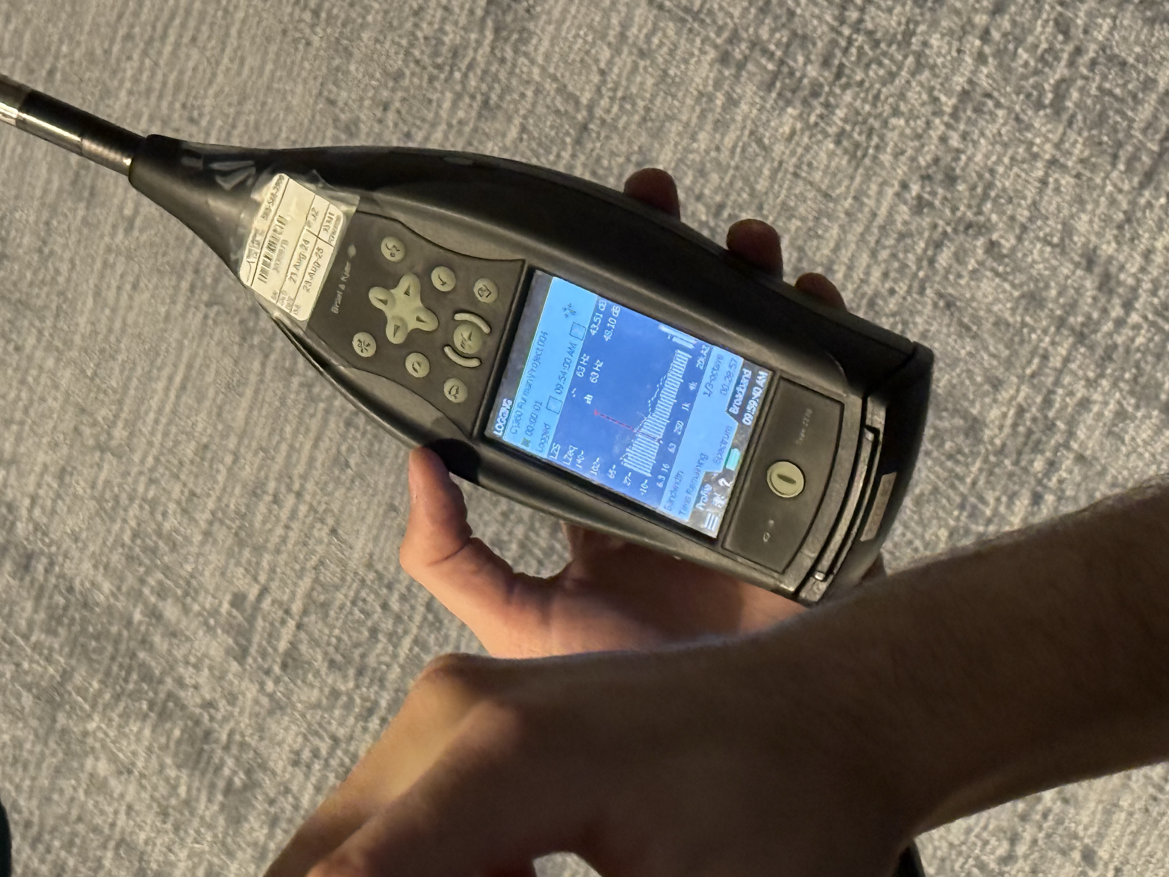 To quantify the situation, we conducted live sound testing using sound pressure level meters. Music at various volumes was played inside the restaurant while simultaneous readings were taken in the apartment above. This allowed us to establish a clear threshold: the maximum volume at which the restaurant could operate without causing discomfort to upstairs residents.