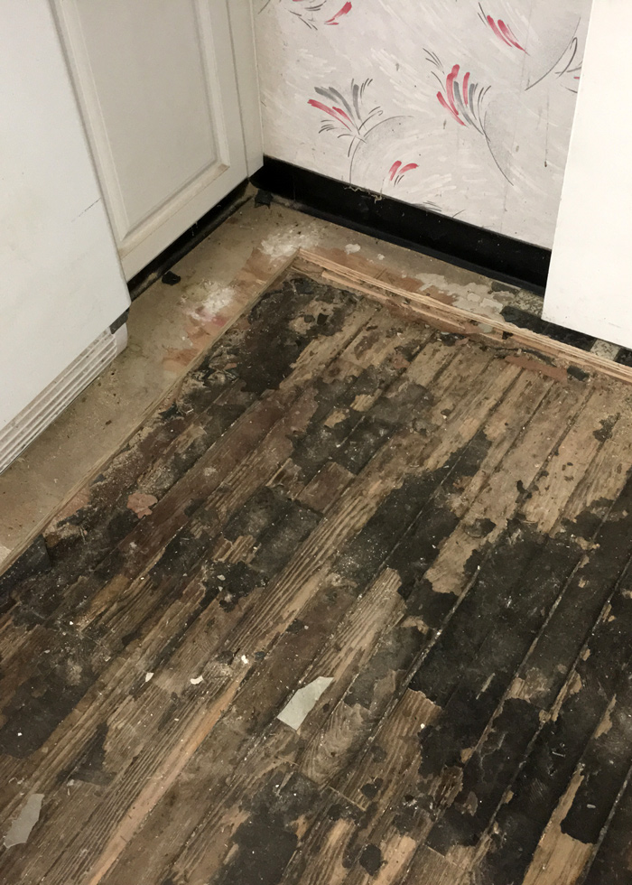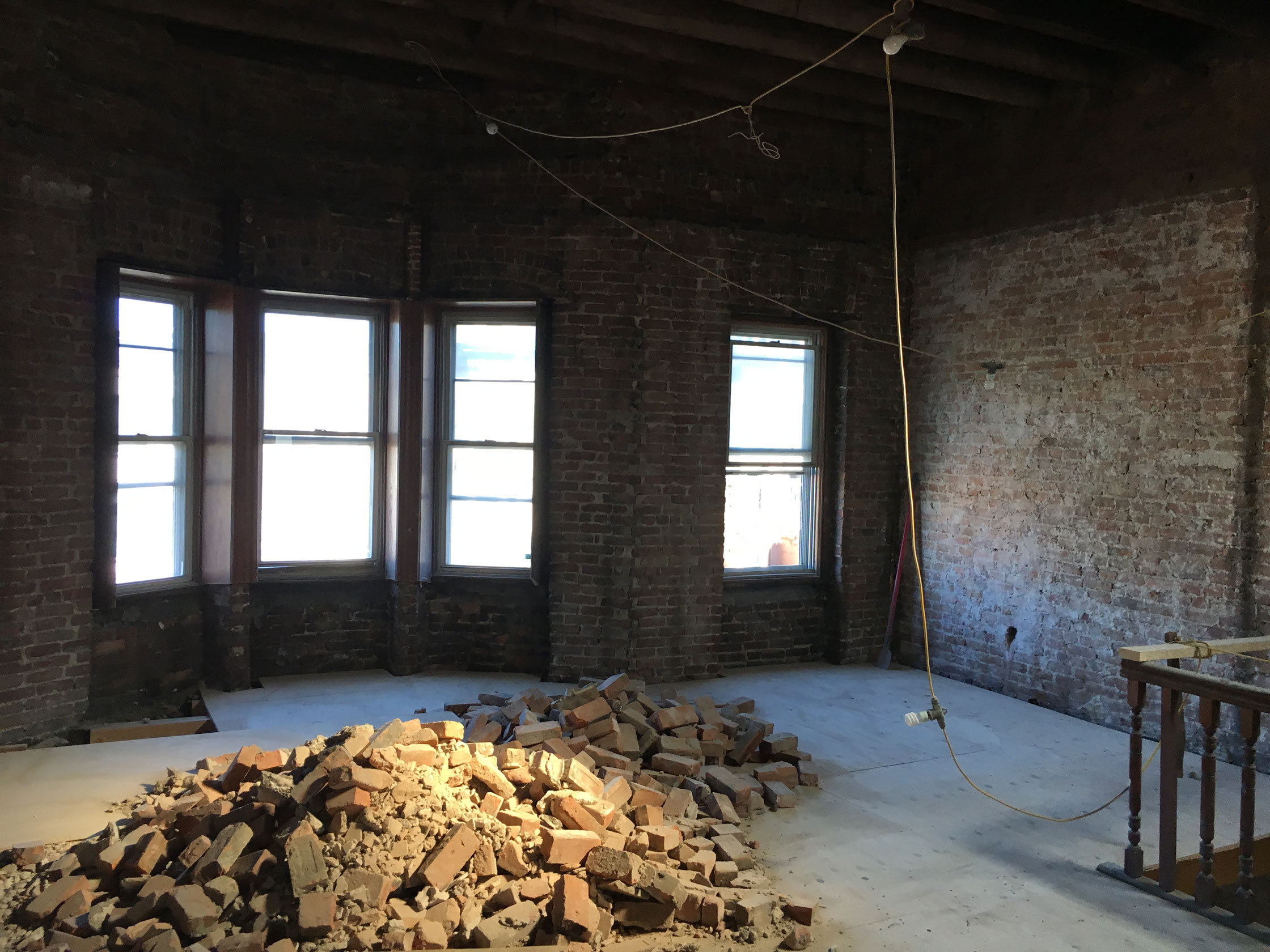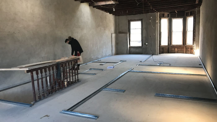 Whenever a project includes demolition work, asbestos testing is required to confirm whether abatement will be necessary. In this case, traces of the toxic material were found under the flooring and in some of the old pipe insulation. This is common for older buildings, and a specialist was brought in for removal and disposal prior to the start of the general construction work.