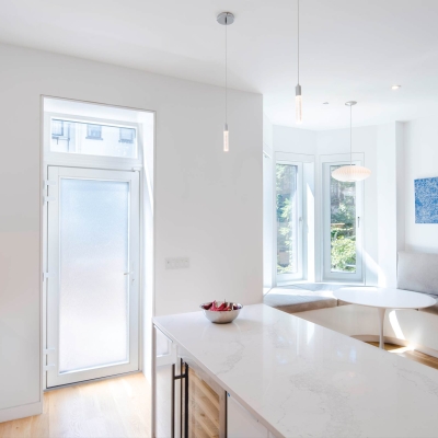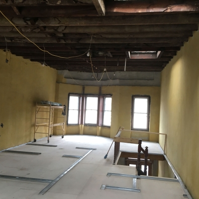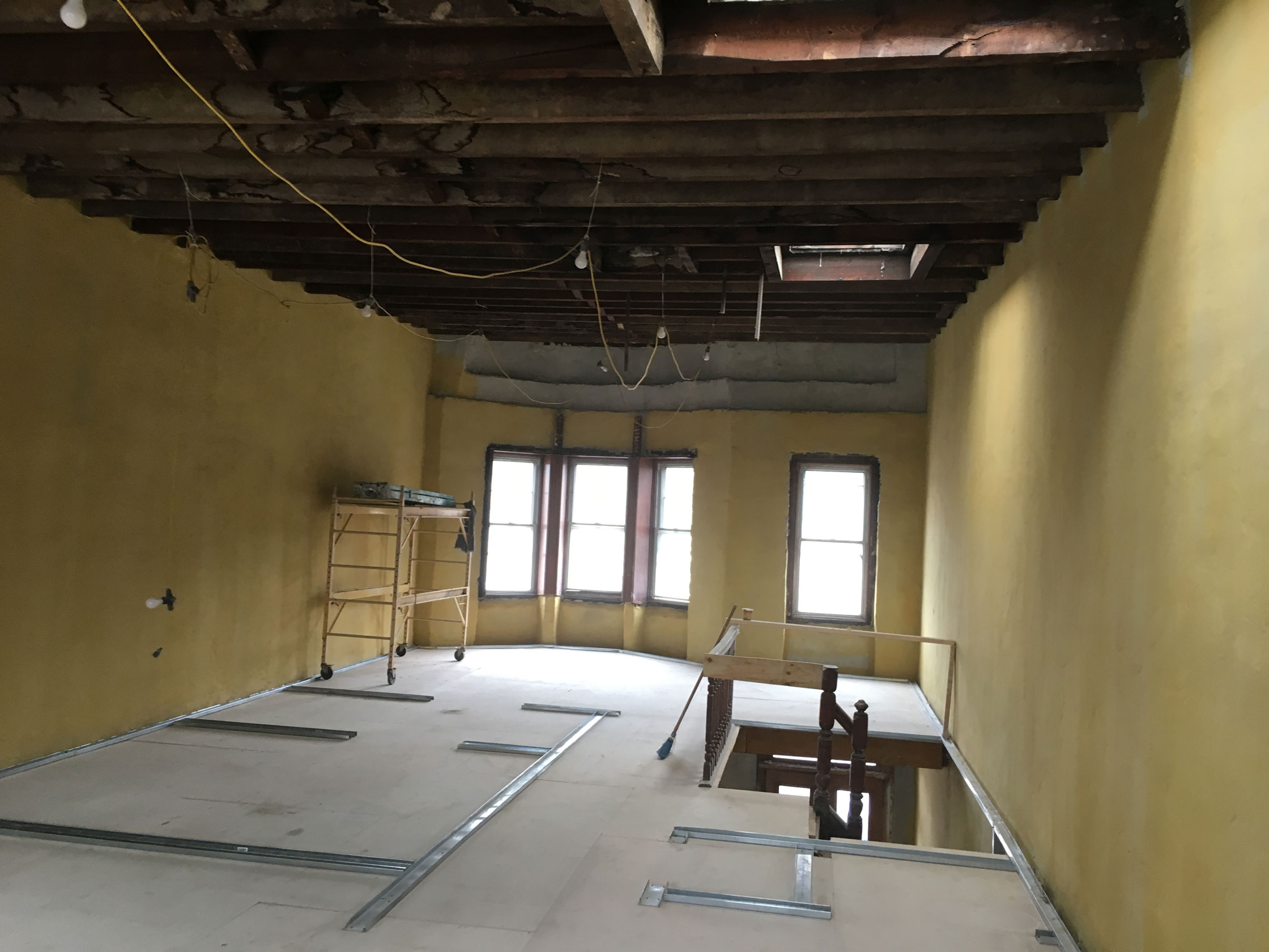 In an historic structure, it is most typical to insulate from the inside, which fully preserves the classic masonry look of the building. Since this project is a row house, it is really only exposed to the elements on the front and rear facades, which allows us to use less insulation on the party walls.
