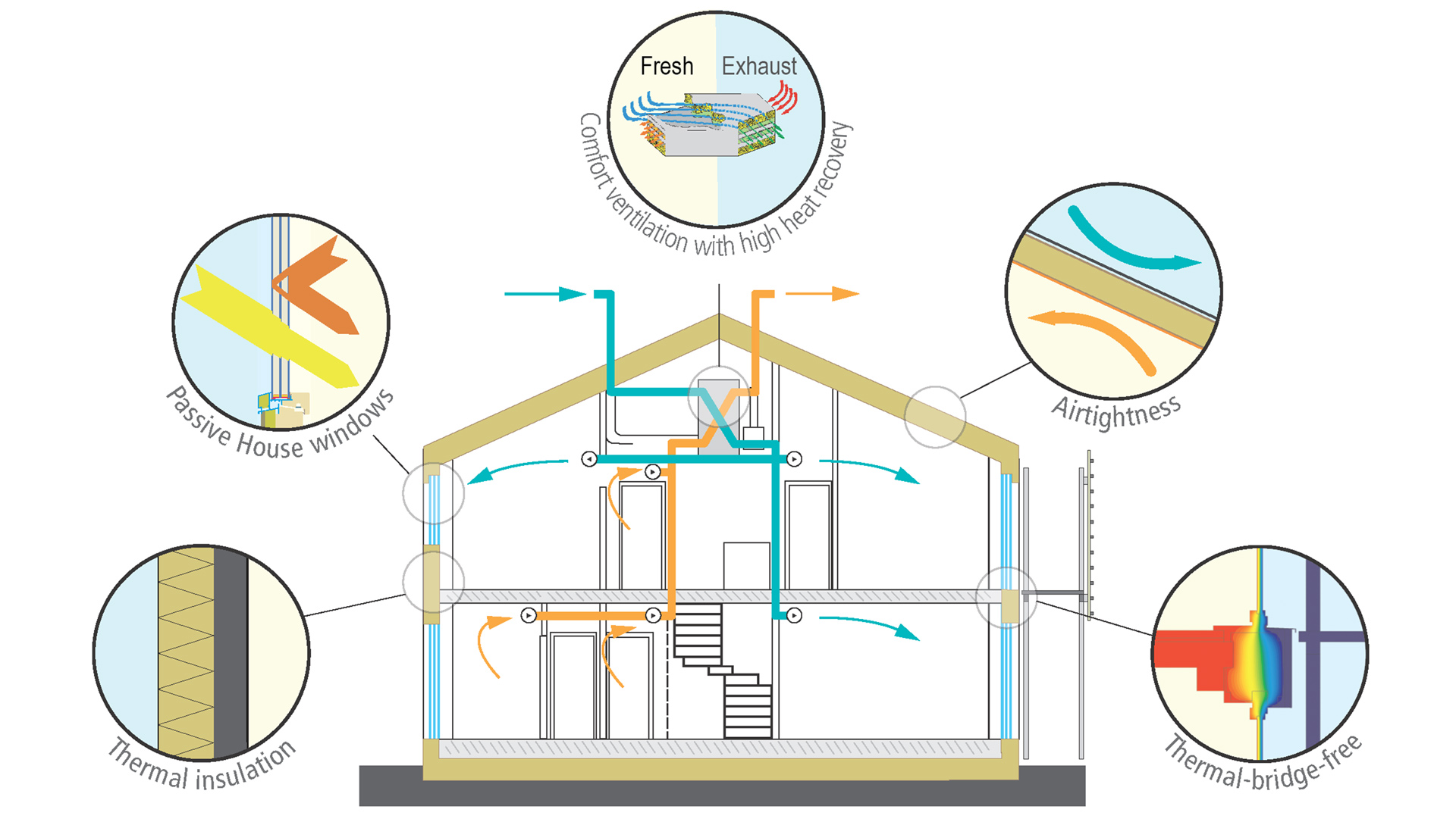 Passive House is a set of design standards that results in a high-performance building that strictly limits the amount of energy it requires, while ensuring high levels of ventilation and fresh air. Certification is based on rigorous modelling, including an evaluation and performance testing of airtightness, ventilation, thermal bridging and electrical loads.