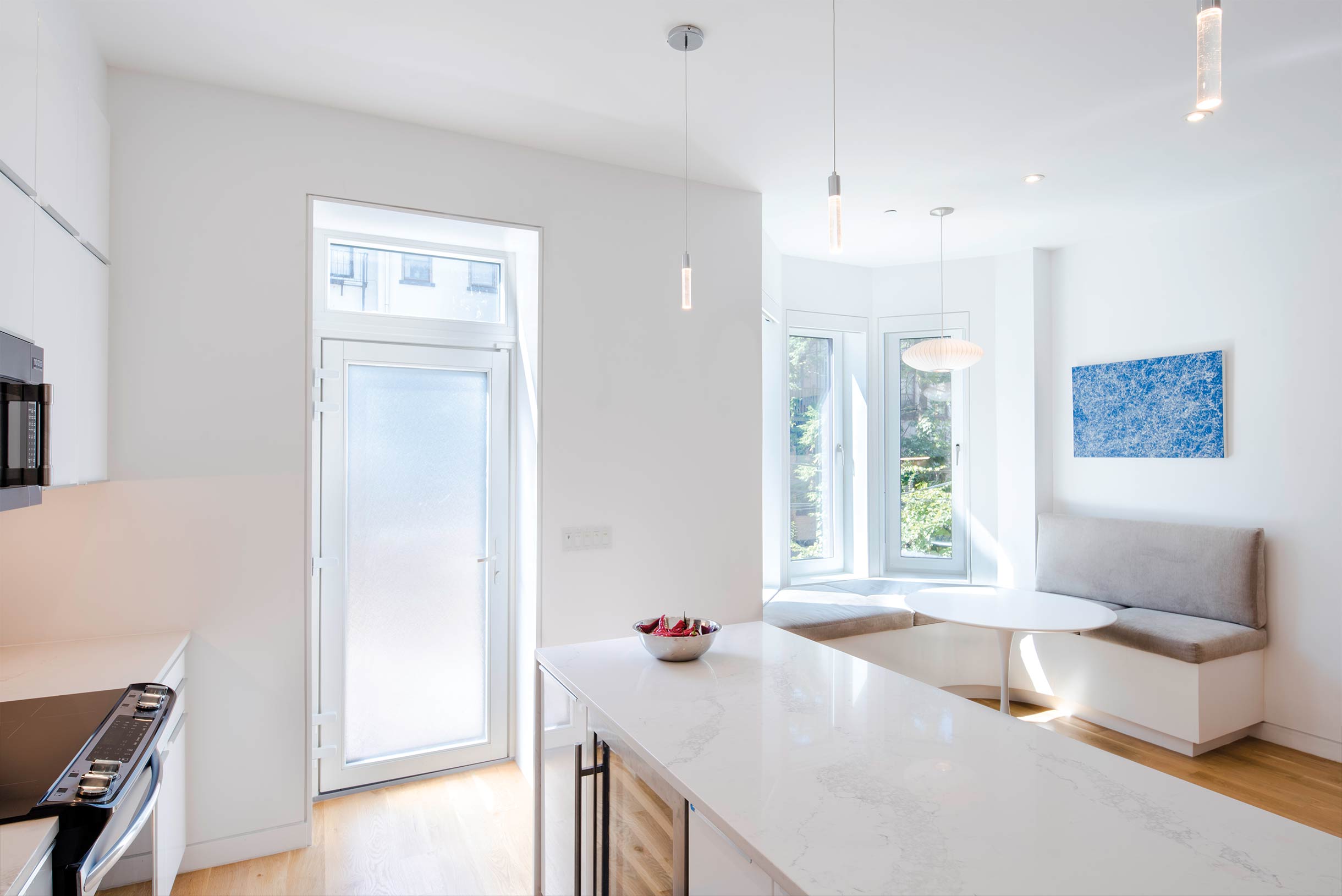 Once all the finishes are installed, a final blower door test is performed at the end of the project to confirm that the building performance remains uncompromised and is eligible for certification.