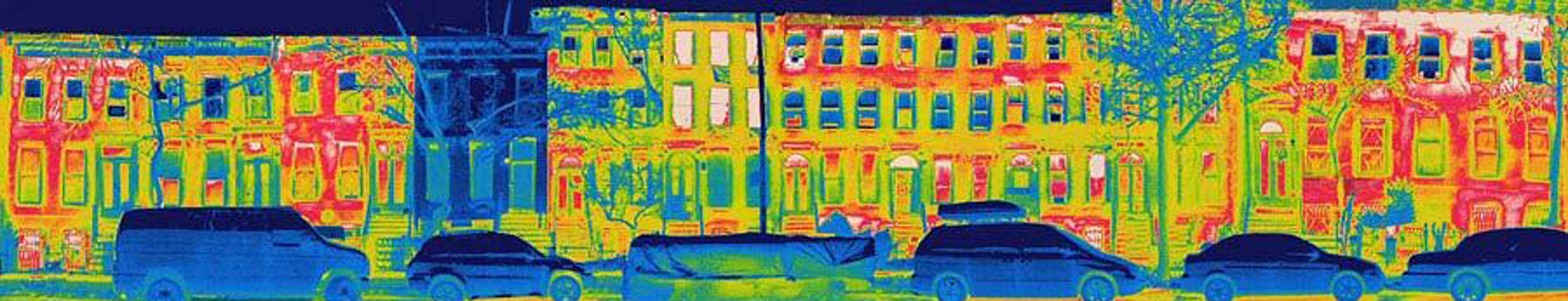 Generally speaking, windows and doors are areas of significant thermal bridging and air leakage (which can sometimes be useful when trying to gauge the outside temperature by touching the glass on the inside of the window), but Passive House windows are so well sealed and insulated that they give no indication as to the temperature differential between inside and outside. The image above, taken with a thermal camera, illustrates the difference in heat released by a Passive townhouse as compared with surrounding traditionally-insulated townhouses.