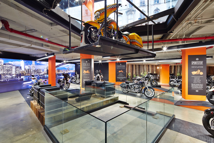 Circular’s design for the Harley flagship in downtown Manhattan leveraged a multi-level space to create numerous opportunities for socializing in lounge areas and a coffee bar, and creates visual excitement through a dramatic bike lift to engage with pedestrian traffic outside.