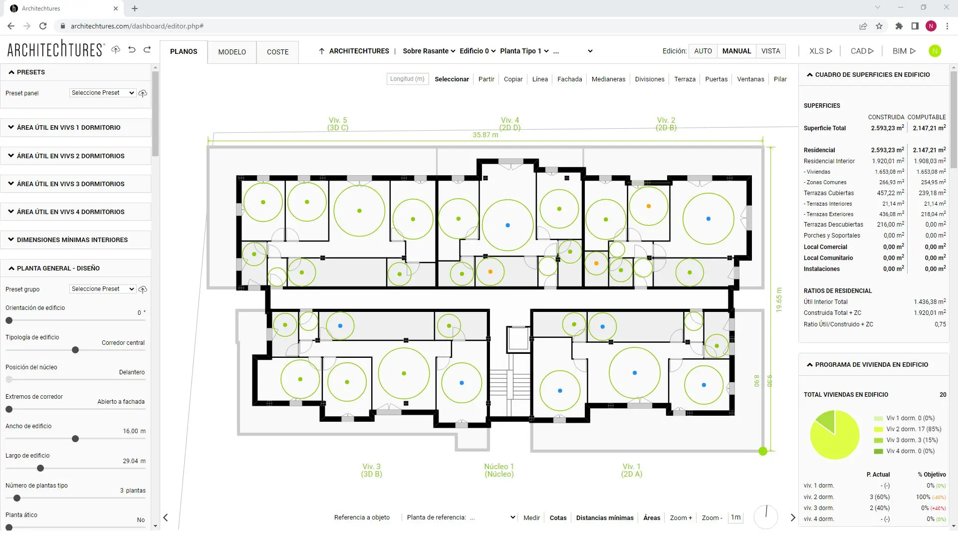 Delve combines generative design with economic modeling—offering architects and planners a way to explore how zoning, height limits, open space, and unit mix impact both form and financial return. Its strength lies in linking geometry to pro forma: how many units, what types, and what ROI. That makes it ideal for larger developments or clients who need quick answers about feasibility without locking into a fixed scheme. Delve isn’t a sketch tool—it’s a dashboard for exploring what’s possible, and what trade-offs different design directions imply.