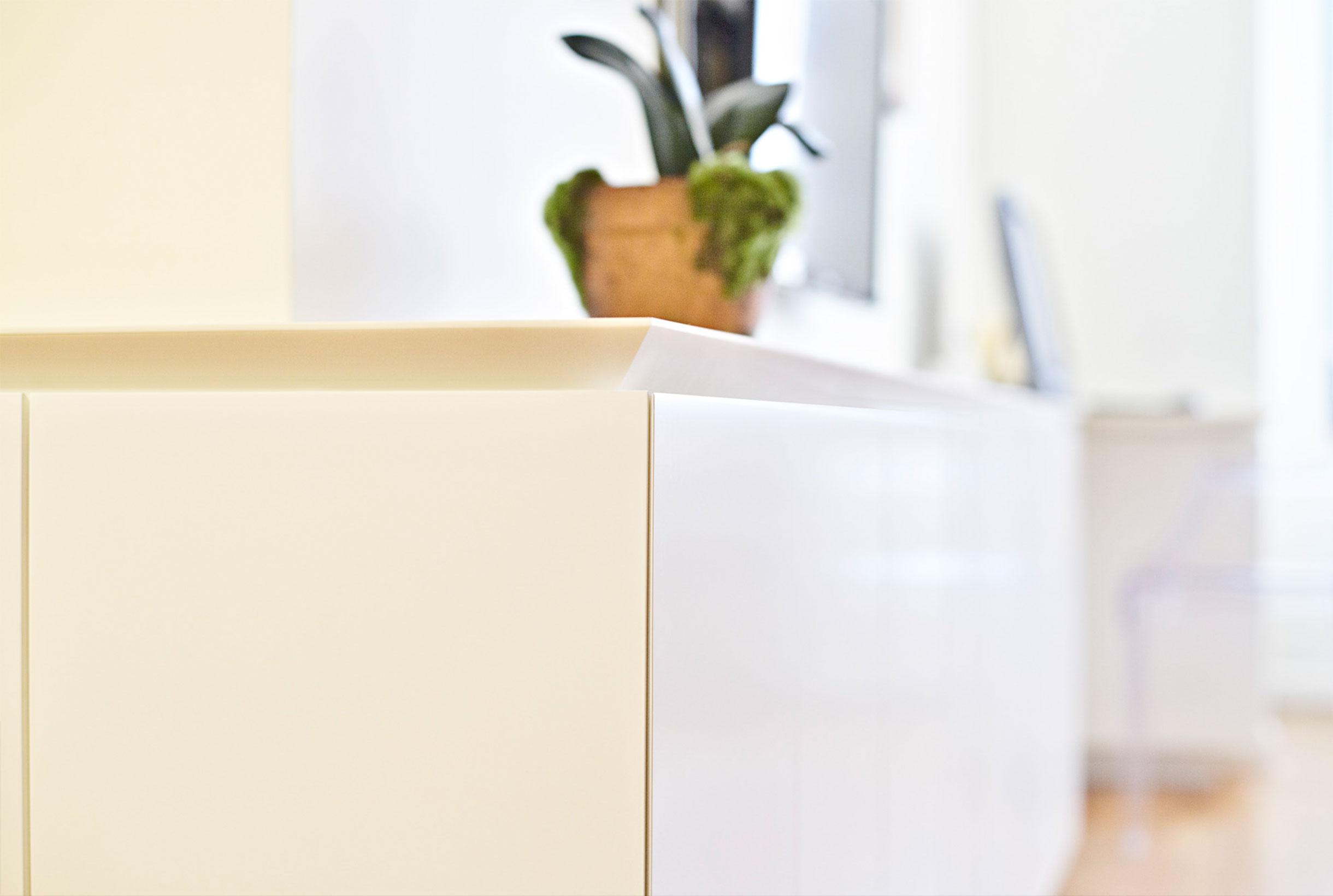 A carefully designed millwork piece solves the classic studio layout problem.