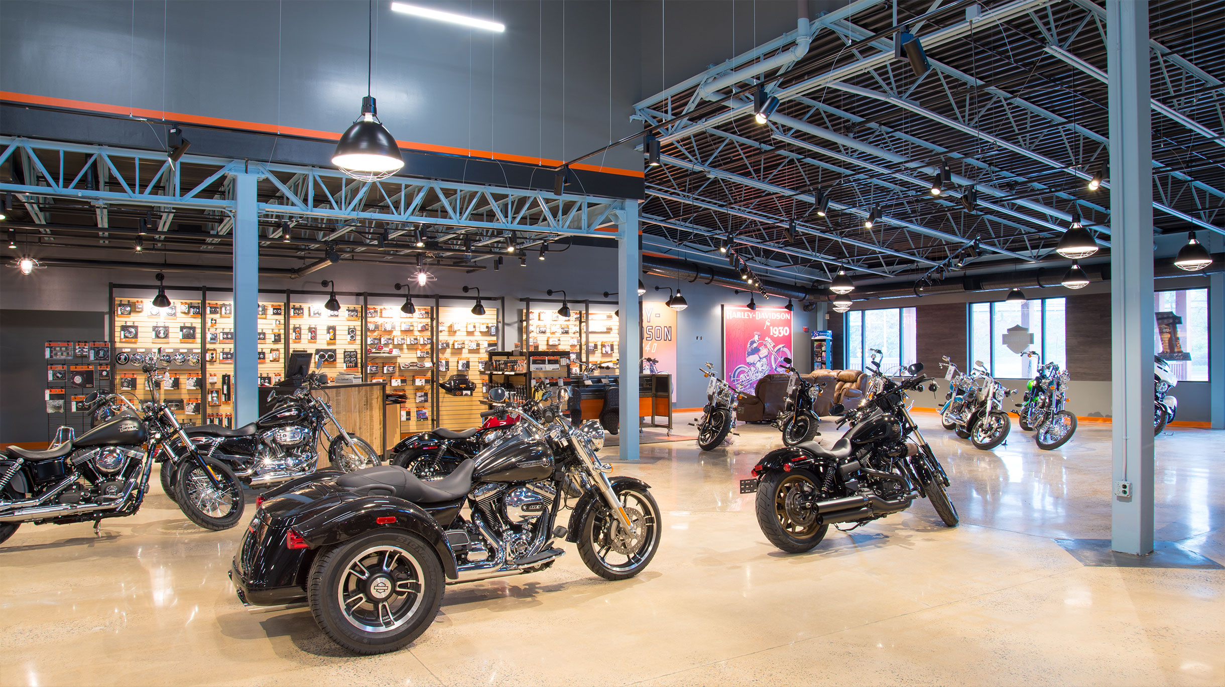 Lighter, brighter and better showroom displays for this Harley-Davidson dealership.