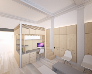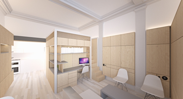 A 100-year old townhouse is renovated to create a mixed use building.