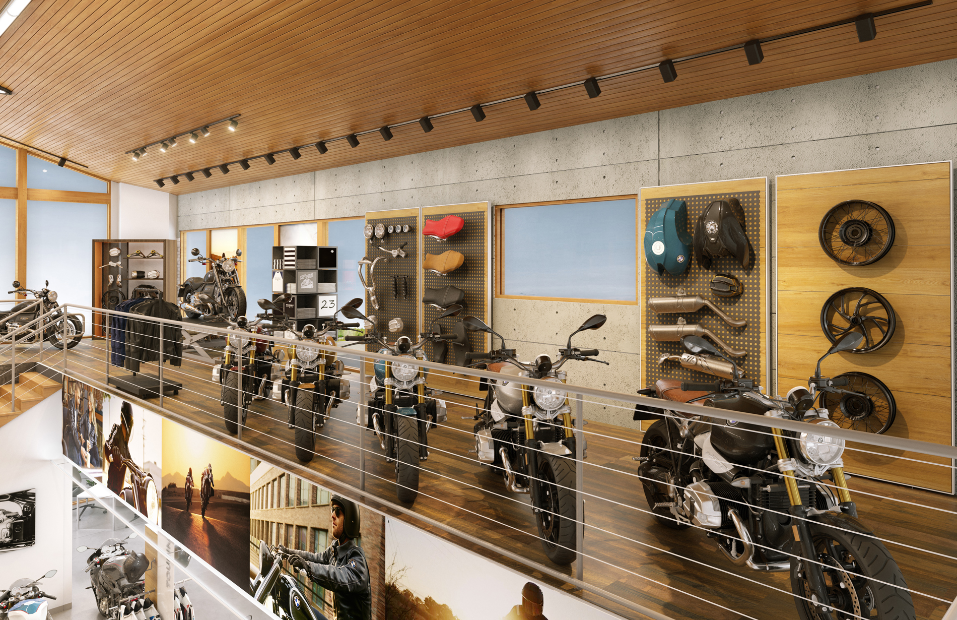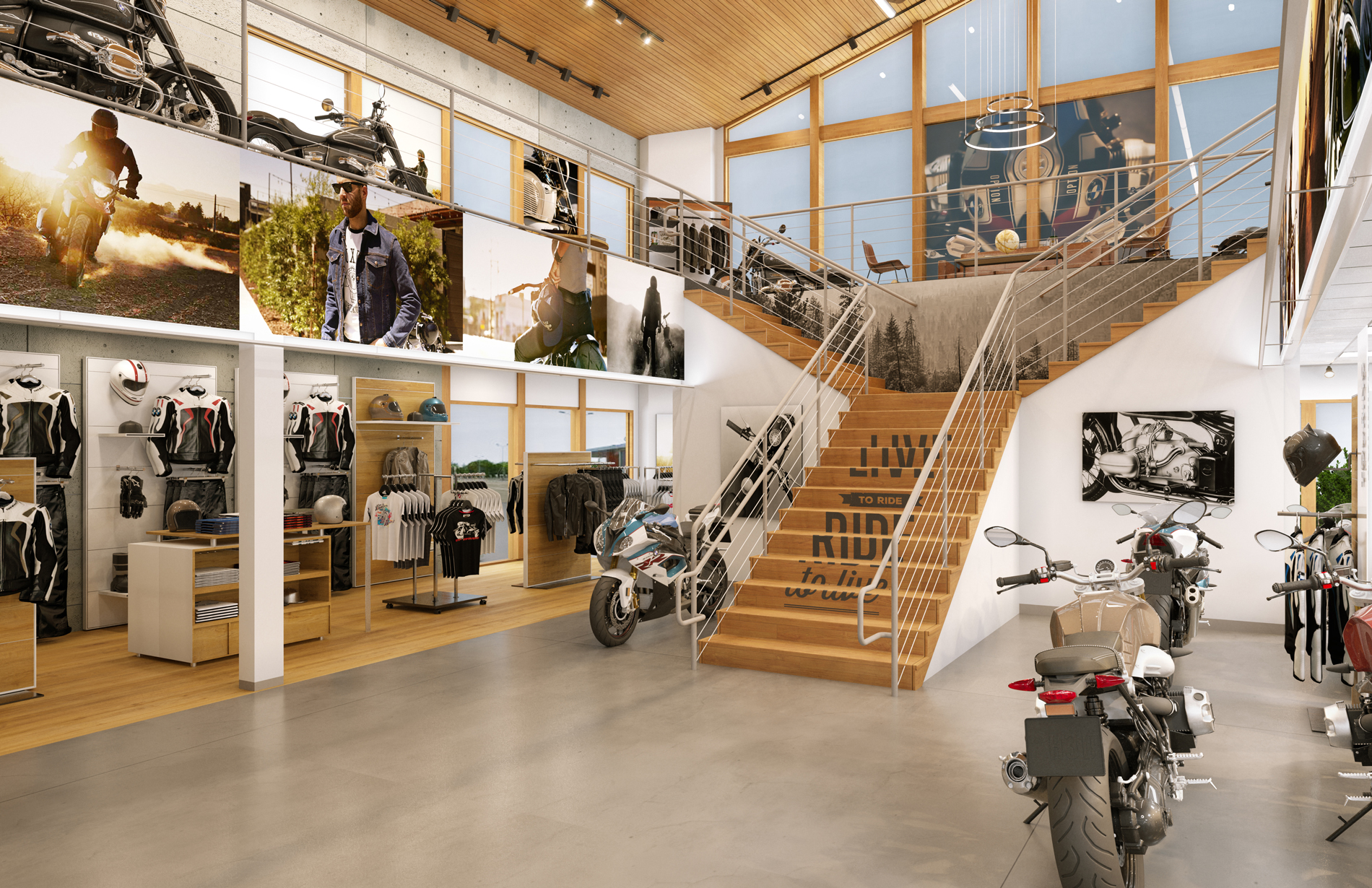 A new showroom design upgrades the retail experience at an existing BMW dealership by seamlessly merging lifestyle and product showcase.