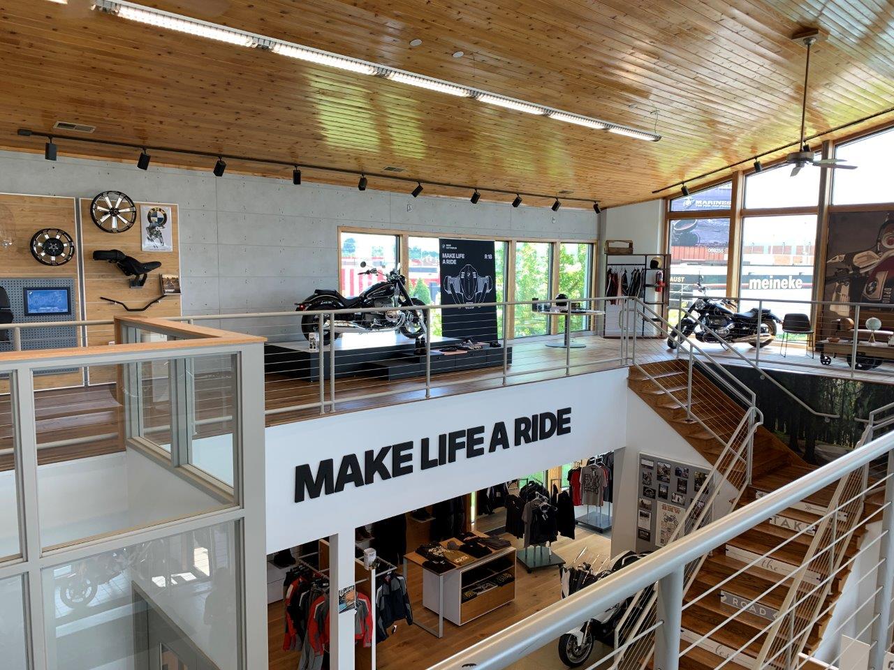 The Lifestyle Lounge was located at the center of the mezzanine’s symmetrical layout to draw customers’ attention upstairs. Its proximity to the customization and merchandising areas allows it to serve as audience seating for dealer demonstrations, product launches, and other events.