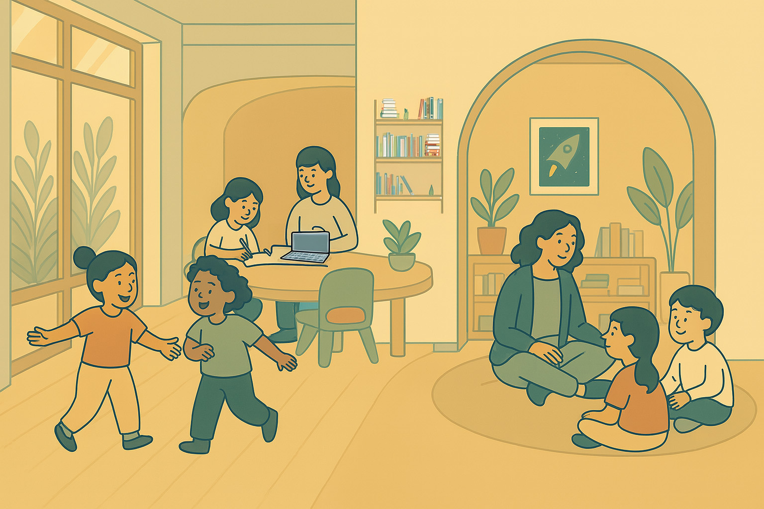 Children, especially in their early years, are sensitive to the environments around them. A noisy, cramped space can heighten anxiety or overstimulation — while an open, shared space with good light and clear boundaries can do the opposite.